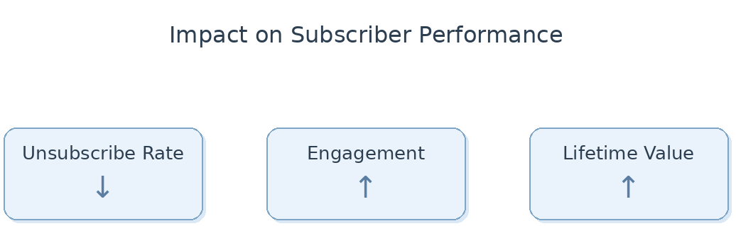 The primary metric for evaluating an exclusion policy is unsubscribe rate within the active subscriber segment. Improvements in this metric typically signal increased message relevance. Secondary indicators include higher open and click rates among subscribers, improved deliverability scores, and stronger revenue performance from lifecycle flows.